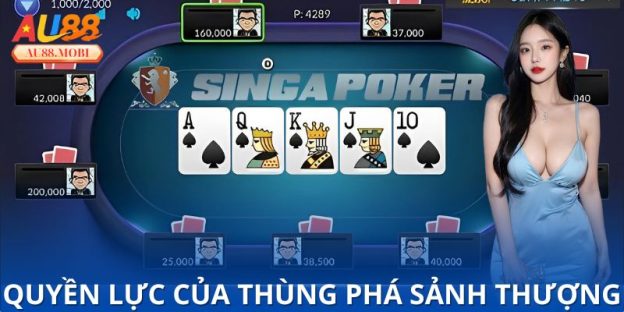 Khác với các bộ bài khác, thùng phá sảnh thượng không chỉ hiếm gặp mà còn mang ý nghĩa “không thể bị đánh bại”. Trong Poker, không có bất kỳ bộ nào vượt qua được nó. Điều này đồng nghĩa với việc nếu bạn đang cầm trong tay dãy 10♥, J♥, Q♥, K♥, A♥ (hay tương tự ở các chất khác), bạn hoàn toàn có thể tự tin rằng mình đang sở hữu bộ bài số một. Chỉ cần Đăng Nhập AU88, bạn đã có thể trải nghiệm Poker trực tuyến và thử vận may với thùng phá sảnh thượng ngay trên nền tảng uy tín, an toàn và minh bạch.